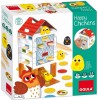 Au Dodo les oursons : un jeu coopératif dès 2 ans, le principe est d’endormir les oursons. Chaque joueur à son tour pioche un jeton dans le sac. Si c’est un jeton de couleur, il pose un objet de cette couleur dans la chambre correspondante. Si c’est un jeton étoile, il place une étoile dans le ciel. Si la chambre de l’ourson est remplie, il s’endort, l’équipe gagne lorsque tous les oursons sont endormis et le ciel non remplit.