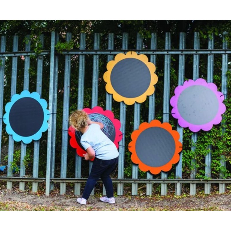 Un ensemble de 5 tableaux, en forme de fleur pour un usage en extérieur.