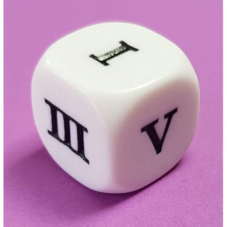 Un dé à 6 faces pour apprendre les chiffres romains de I à VI.