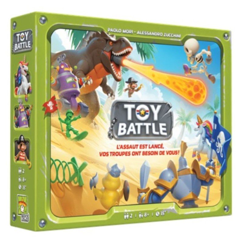 Jeu nommé à l'As d'or 2026. Dans Toy Battle, chaque joueur commande une armée de jouets dont l'objectif est de contrôler des régions pour gagner des médailles et tenter d'atteindre le QG de son adversaire. À chaque tour de jeu, deux options sont possibles : se ravitailler en piochant des cartes Troupe, ou positionner une carte Troupe de sa réserve sur le terrain. Chaque carte Troupe possède une valeur de force de 1 à 7 ainsi qu’un effet spécifique qui s’active lors de sa pose. Une carte Troupe peut être placée sur une case vide, sur une case déjà occupée par l’une de ses propres troupes, ou sur une case contrôlée par une troupe adverse, à condition que sa force soit strictement supérieure.