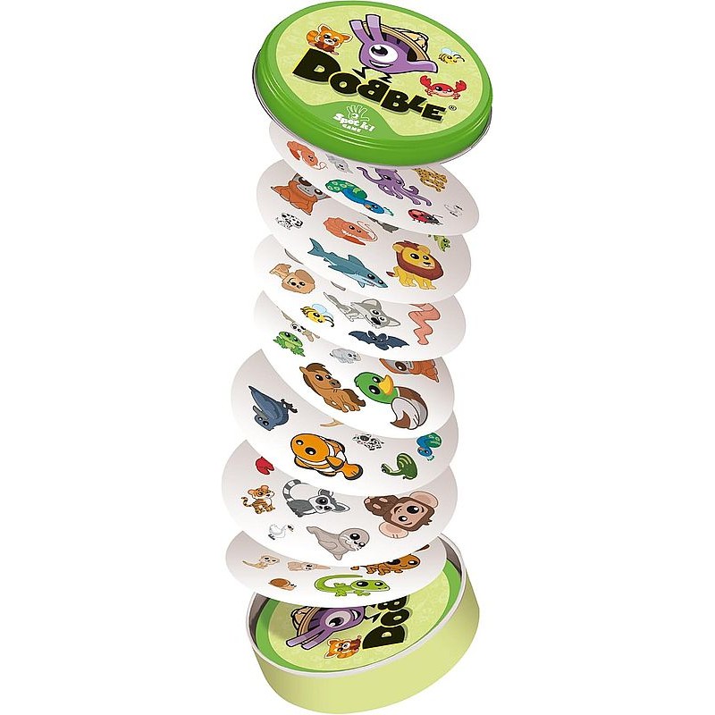 Jeu de rapidité, de réflexe et de discrimination visuelle avec 5 règles différentes sur le thème des animaux. Pour la première on donne une carte à chaque joueur et on pose au milieu le tas de cartes, faces visibles. Dès qu'un joueur repère un symbole identique entre sa carte et celle du tas central, il nomme le symbole et prend la carte. Une nouvelle carte est ainsi révélée et la partie continue jusqu'à épuisement du tas de cartes. Les autres règles combinent les actions de manière différente. Cela renouvelle le plaisir de jouer et certaines règles semblent plus faciles ou plus difficiles selon les joueurs. Un jeu désormais classique apprécié par tous !