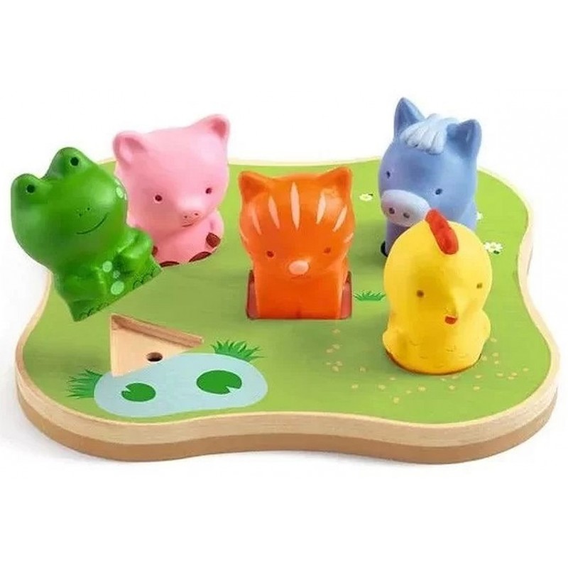Puzzle sonore avec 5 animaux à encastrer. Les animaux tiennent bien debout et l'enfant peut jouer avec eux et inventer des histoires. A chaque fois qu'il place une figurine à sa place, il entend le cri de l'animal. Un premier encastrement très attractif pour les petits, avec des sons de qualité que l'on peut bien identifier!