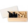 Contenu : 32 pièces en bois massif (taille du roi : 7,7 cm - diam. du socle 1,8 cm), dans un coffret en bois 20,5 x 10,5 x 5,5 cm.