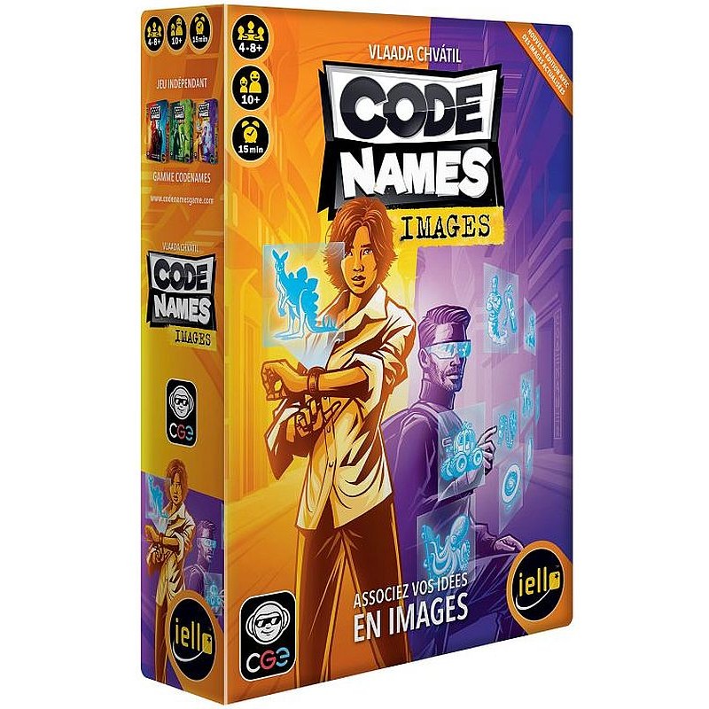 Contenu: 14 tuiles Informateur ((7 x 7 cm) dont 7 bleues et 7 rouges, 1 tuile Extra, 4 tuiles Neutre, 1 tuile Assassin, 140 cartes Image recto-verso, 60 cartes Clé, 1 support de carte Clé, et règle.