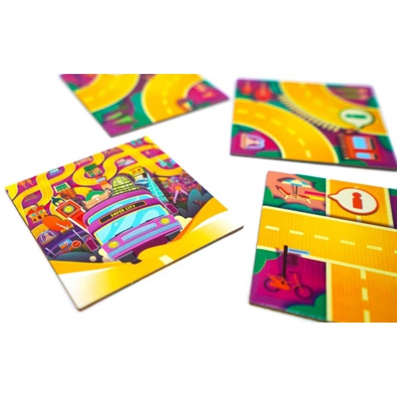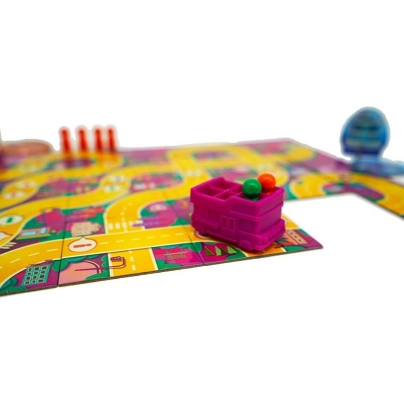 Le jeu propose 4 niveaux de difficulté, grâce à des cartes et modules (déviation, gare, parc d’attractions, stade…) qui enrichissent la ville au fil des parties. La ville n’est jamais statique, c'est aux joueurs de construire leur route pour atteindre l'objectif de leur journée. Un jeu évolutif qui combine coopération, planification et et repérage spatial.