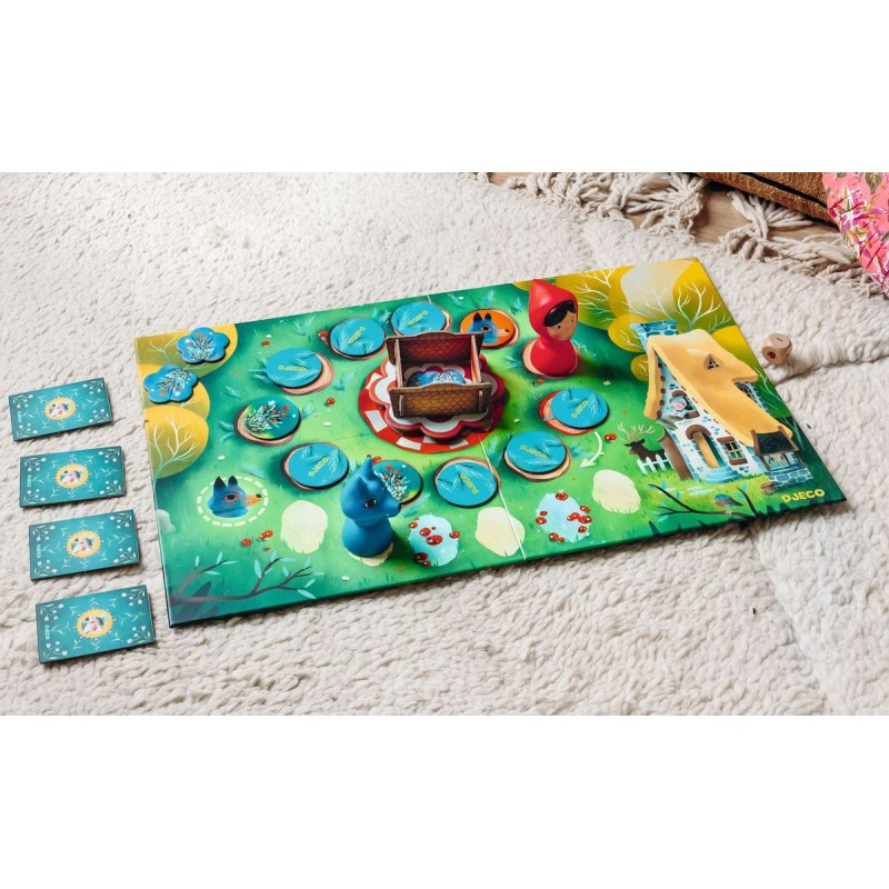 En cas d’erreur d'annonce, le loup avance d’une case sur le parcours. Les joueurs doivent donc faire appel à leur mémoire pour se souvenir des cases déjà visitées. La partie se termine par une victoire lorsque les 5 tuiles Fleur sont réunies dans le panier. En revanche si le loup arrive à la maison en premier, la partie est perdue. Une jeu coopératif simple qui fait appel à la mémoire.