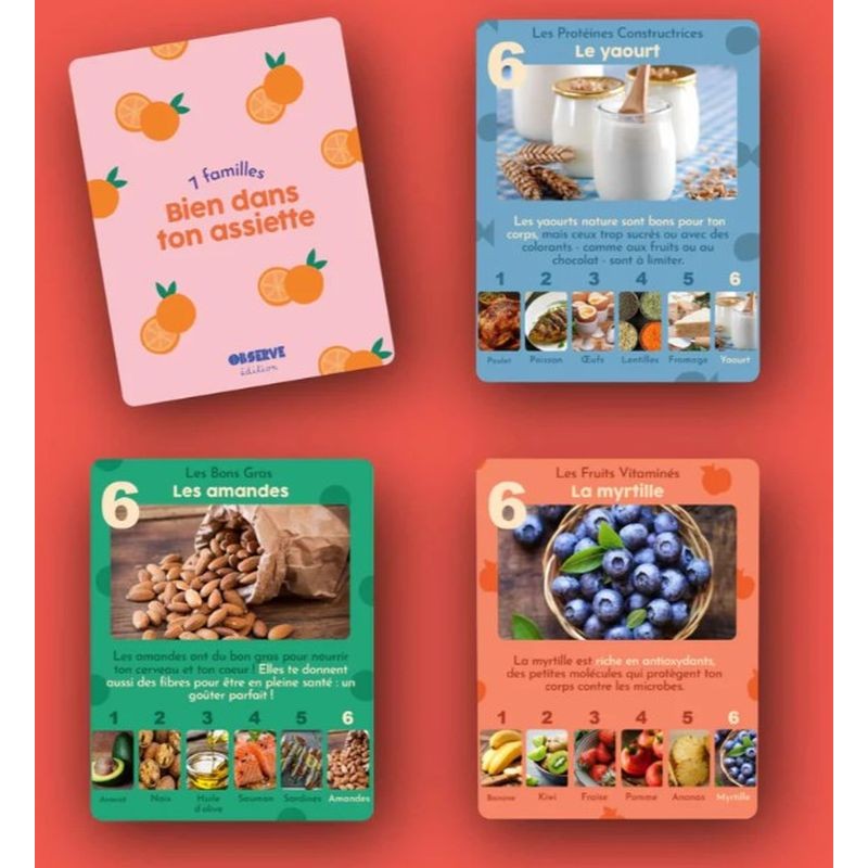 Jeu de 7 familles sur le thème de l’alimentation pour découvrir les aliments bons pour la santé et ceux qu’il vaut mieux consommer avec modération.
