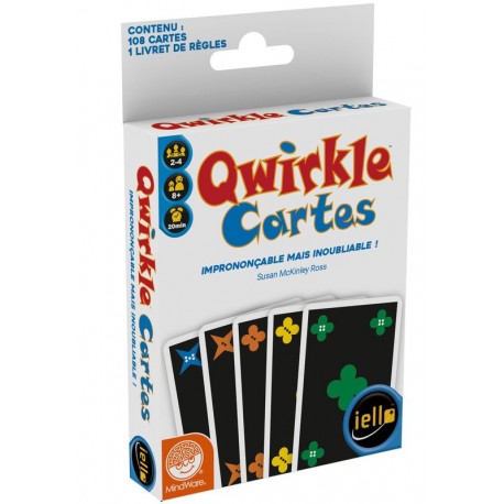 Le plaisir de Qwirkle dans un jeu de cartes tactique. Tous les joueurs ont 9 cartes en main. L'objectif est de réaliser le plus grand nombre de Qwirkle possibles, c'est-à-dire des séries de 6 cartes toutes différentes avec la même forme géométrique ou la même couleur. Chaque joueur à son tour peut poser autant de cartes qu'il peut ou qu'il souhaite. Il peut commencer une série avec 3 cartes, compléter une série et même déplacer une carte d'une série à une autre, à condition que les séries en cours aient au minimum 3 cartes. Les possibilités sont nombreuses, le jeu bouge tout le temps et il faut rester en éveil pour gagner le plus grand nombre de Qwirkle!