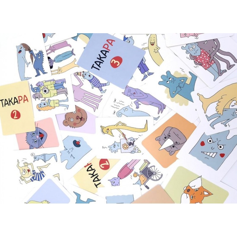 TAKAPA est un jeu de cartes qui permet aux enfants d'apprendre à réagir face à des situations difficiles qu'ils peuvent rencontrer dans leur quotidien : moquerie, rejet, harcèlement, violence physique, etc. Le principe est simple et très engageant : un enfant pioche une carte Situation (par exemple : un enfant se moque d'un autre, l'isole en ne jouant pas avec lui, etc.). Il décrit la scène à l’ensemble du groupe, puis chacun est invité à se mettre à la place du personnage et à répondre à la question : « Comment te sentirais-tu dans cette situation ? ». Cette première étape favorise la mise en mots des émotions et développe l’empathie.