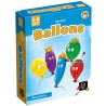 Adorable jeu de cartes pour les plus jeunes. Chaque joueur reçoit 5 cartes ballons qu'il pose devant lui. Chaque joueur à son tour pioche une carte action et exécute l'action indiquée (1 ballon violet s'envole, 1 ballon rouge éclate, 1 ballon jaune est crevé, etc) en retournant le ballon concerné, s'il en a un dans son jeu. Quand la carte action est une carte "maman", le joueur peut reprendre un de ses ballons perdus. La partie s'arrête quand un joueur a perdu tous ses ballons. Le gagnant est celui qui a conservé le plus grand nombre de ballons. Idéal pour un premier jeu de cartes!