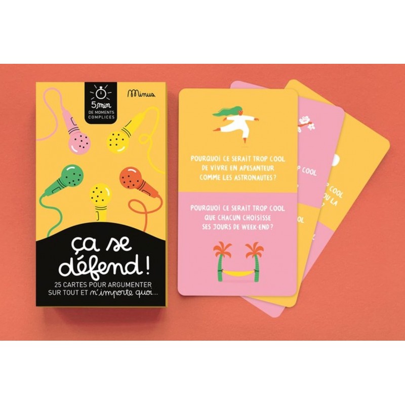 Une approche ludique et pleine d'humour, propre à l'éditeur Minus, afin de favoriser les échanges spontanés. Ce jeu s’emporte facilement et s’adapte à tous les contextes : en famille, en classe ou en centre de loisirs. Un jeu simple et convivial qui encourage la prise de parole, l’argumentation et la découverte de différents points de vue.