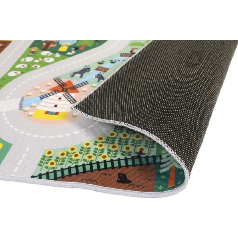 Contenu : 1 tapis de jeu illustré sur le thème de la campagne – Dimensions : 120 x 77,5 cm