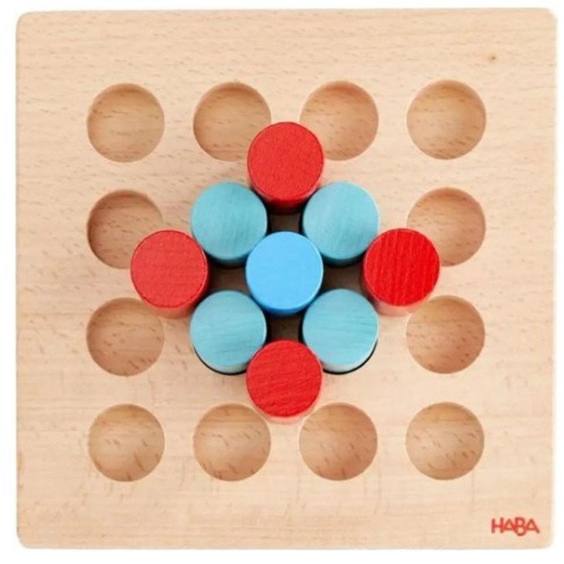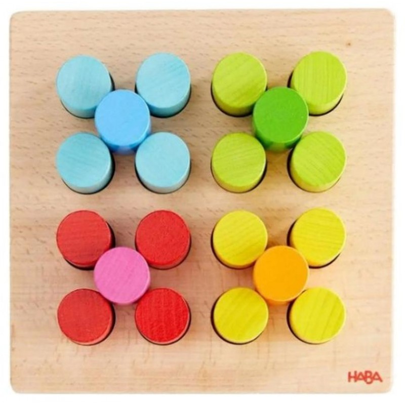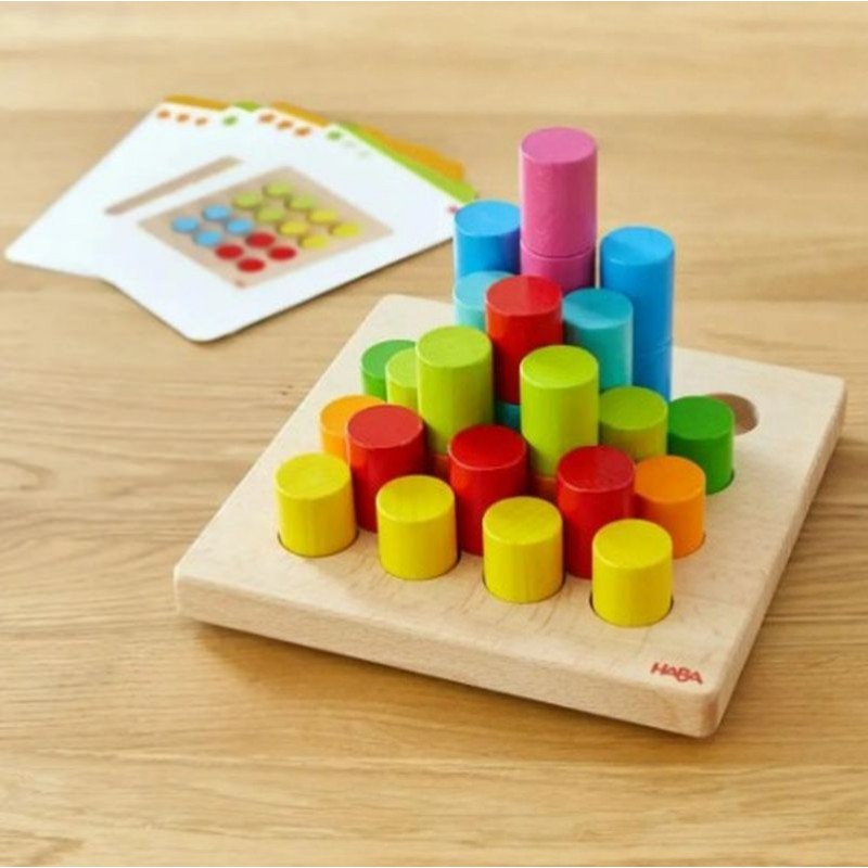 Jeu de manipulation et de construction en bois composé de cylindres à encastrer et à empiler, destiné aux enfants à partir de 2 ans.