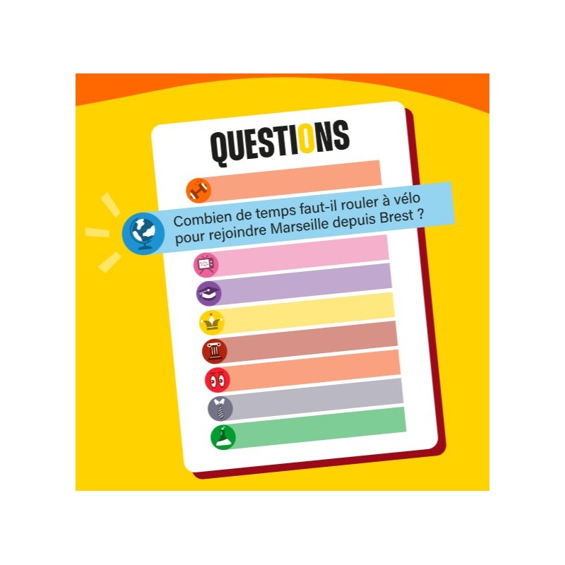 Avant de commencer, les 9 médailles correspondant aux différentes catégories sont distribuées aléatoirement aux équipes. À son tour, une équipe choisit une catégorie et lit la question associée sur la carte Questions. Toutes les équipes inscrivent leur réponse sur une ardoise. Dès qu’une équipe a répondu, elle retourne le sablier : les autres n'ont alors plus que 10 secondes pour donner la leur.