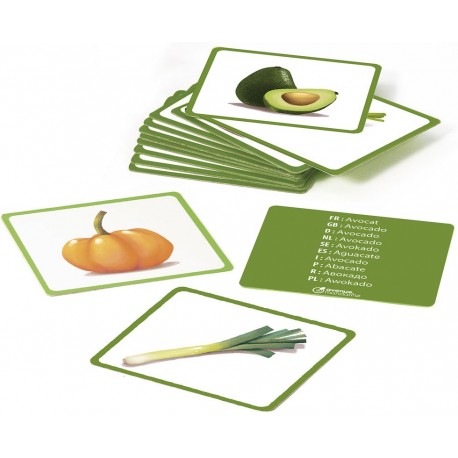Magnifique imagier sur le thème des légumes. 24 grandes cartes en carton rigide et vernis permettent une manipulation facile et intensive. Les enfants peuvent les manipuler librement. Un adulte peut également organiser des activités de langage qui permettent aux enfants d'enrichir leur vocabulaire. Pour les plus grands, le nom des légumes est écrit en 10 langues au dos des cartes (FR,GB, D, NL,SE, ES, I, P, R, PL).