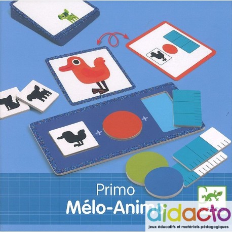 Jeu de reconnaissance des critères forme, couleur et taille. L'enfant pioche une carte qui représente un animal. Puis il analyse les différents critères de l'image et insère dans le plateau les éléments correspondants: la silhouette, la couleur et la taille (petit, moyen ou grand). La solution se trouve au dos de la carte Animal. On peut également donner 3 critères à l'enfant qui devra retrouver l'animal correspondant. Un jeu simple et bien fait pour apprendre aux enfants à repérer les différents éléments d'une image.