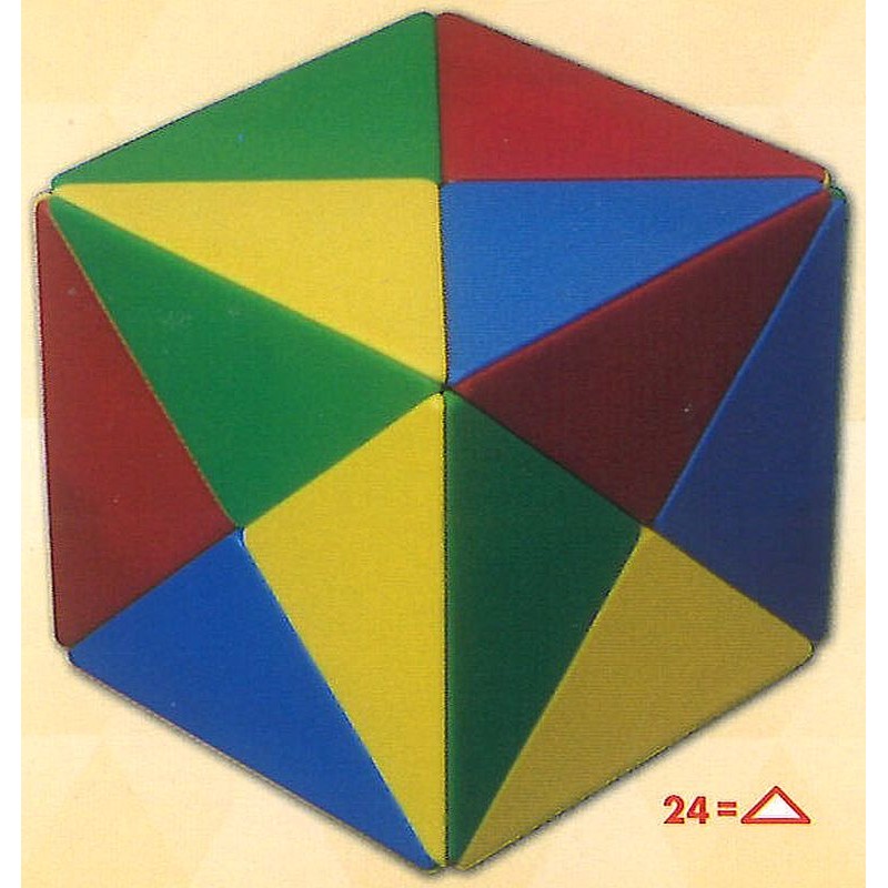 Contenu: 24 triangles magnétiques (taille du cube reconstitué avec les 24 pièces: 8 x 8 x 8 cm), 20 cartes défis avec la décomposition de la forme au dos (8 x 8 cm).