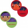 Contenu : 32 cartes rondes et plastifiées (diam. 6,7 cm), règles du jeu, dans une boite de rangement en métal facilement transportable.