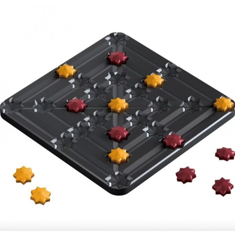 Cette mécanique simple à appréhender offre une grande richesse stratégique : il faut anticiper les placements futurs, gérer l’interaction entre ses pièces et celles de l’adversaire. La partie se termine dès qu’un joueur parvient à former un carré parfait avec quatre de ses étoiles reliées par des lignes droites. Un jeu de stratégie qui développe l’anticipation et le repérage spatial.