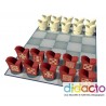 Contenu : 20 très jolies pièces rouges ou blanches de 3 x 3 cm, un plateau qui se roule, 35 cases sur 19 x 26 cm, une règle du jeu, dans une boîte 20 x 20 x 5 cm
