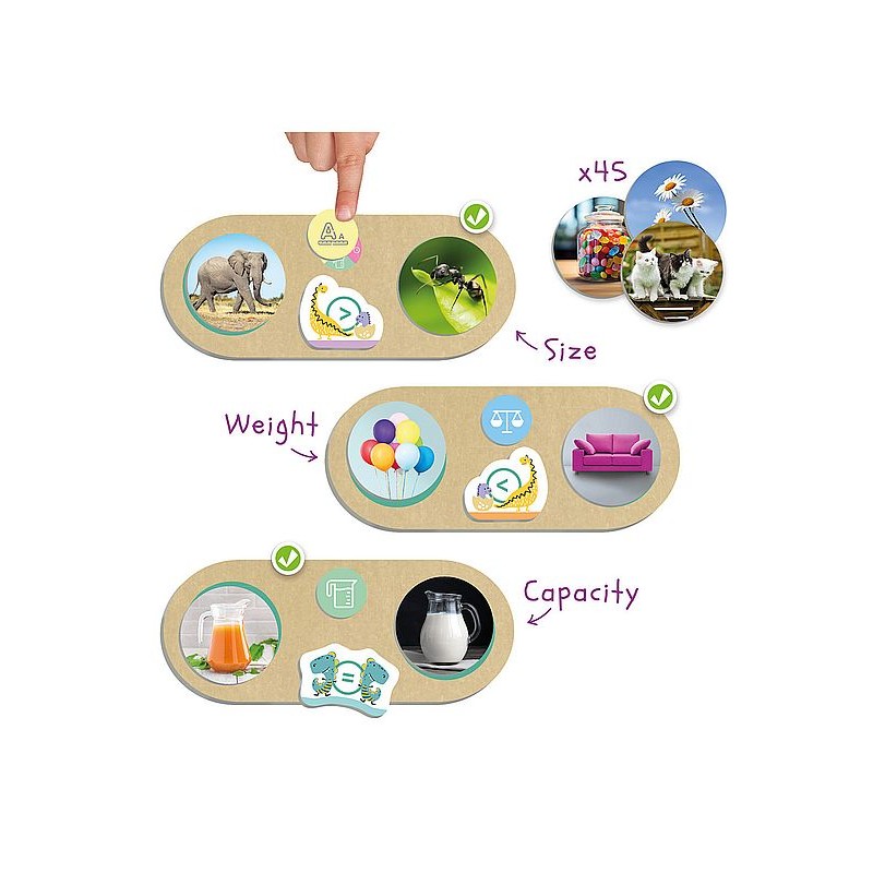 Un jeu pour apprendre à comparer tailles, poids, quantités et capacités, en toute simplicité.