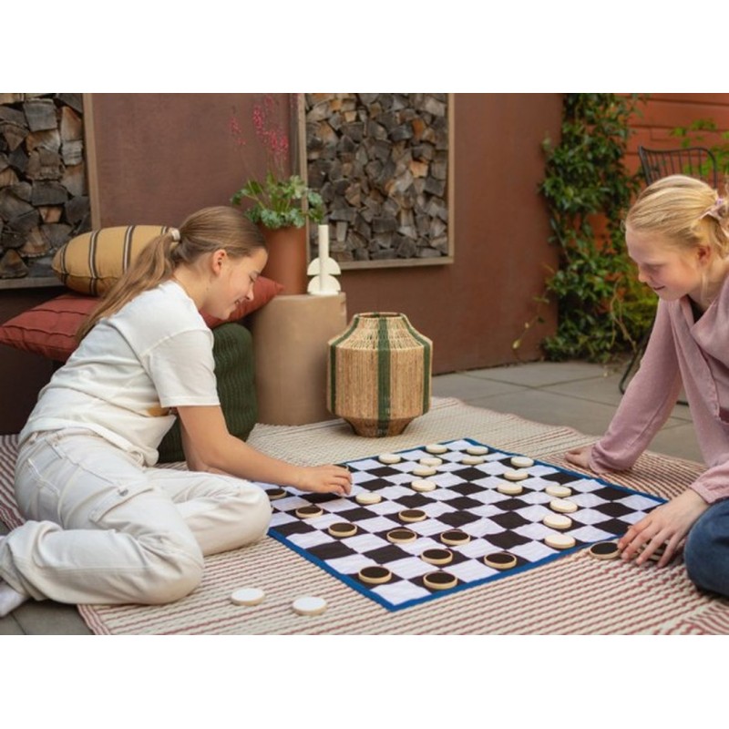 Jeu de dames géant avec pions en bois, pour jouer à l’intérieur comme à l’extérieur.