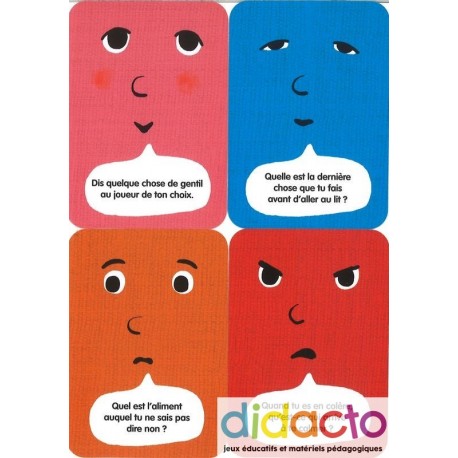 Un jeu animé tiré des albums de Cédric Ramadier et Vincent Bourgeau. Chaque joueur à son tour jette le dé. S'il tombe sur une face couleur, il avance son pion sur la prochaine case de la même couleur. Puis il pioche la carte de la couleur correspondante et réalise l’action demandée. Si le dé tombe sur la face Souris, le joueur avance jusqu’à la prochaine case Souris défis et réalise l’action demandée. Le premier arrivé sur la case de la souris au centre du plateau gagne la partie! Les actions demandées confrontent les enfants à des situations ou à des émotions et leur permettent des échanges enrichissants!