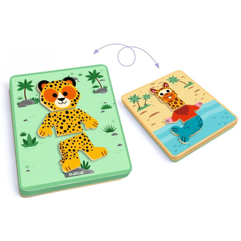 Inzebox Mix'n'match propose une boîte métallique recto verso, offrant deux décors différents, accompagnée de 24 magnets en bois de qualité. À l’aide des cartes Modèle, les enfants peuvent reproduire les animaux proposés ou inventer librement leurs propres créatures selon leur imagination. La double face de la boîte et la variété des magnets encouragent la créativité, tandis que le rangement directement dans la boîte facilite l’autonomie de l’enfant et la simplicité d’utilisation. Un outil créatif qui invite l’enfant à manipuler, explorer et imaginer à l’infini.