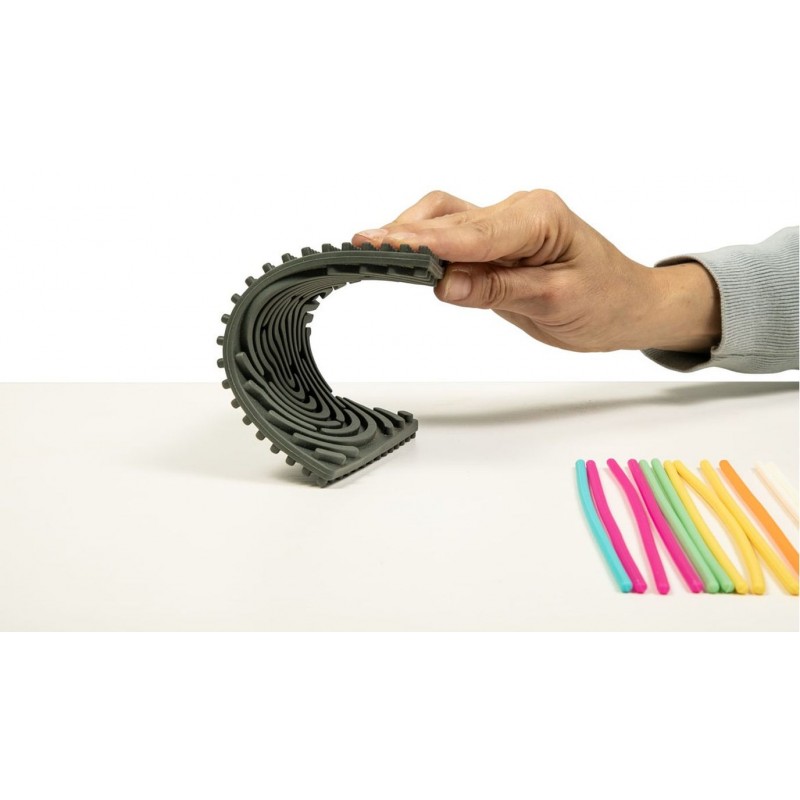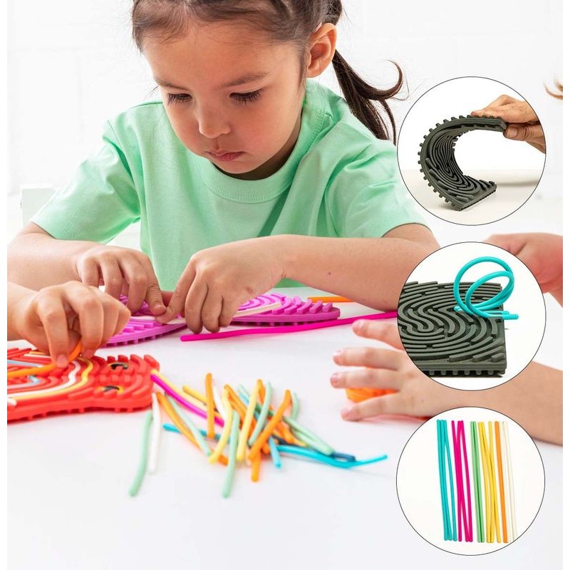 Rectangle en silicone avec 18 fils flexibles colorés, pour créer des dessins et des formes, dès 3 ans.