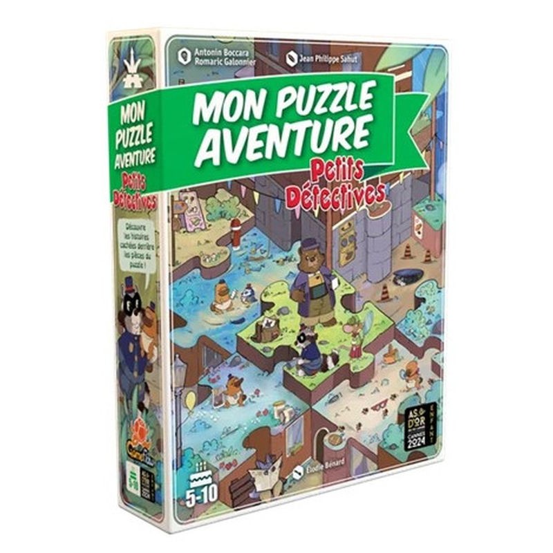 Un puzzle-jeu narratif où l’enfant assemble un puzzle de 42 pièces, puis part à la découverte d’une histoire qui se dévoile au fur et à mesure en lisant le verso de chaque pièce.