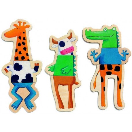 Puzzles animaux de 3 pièces que l'on peut reconstituer ou mélanger pour inventer des animaux rigolos! A utiliser sur le tableau magnétique de la classe ou sur le réfrigérateur de la maison!
