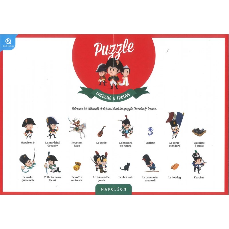 Puzzle Cherche & trouve de 200 pièces, accompagné du livre Napoléon des éditions Quelle histoire, à partir de 7 ans.