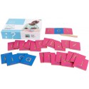 Des cartes avec des formes et des chiffres rugueux pour se préparer à l'écriture.
