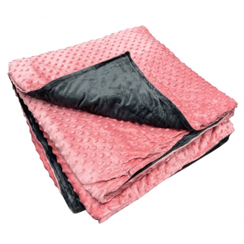 Contenu : 1 couverture lestée de 3 kg (90 x 100 cm) de couleur gris et rose.