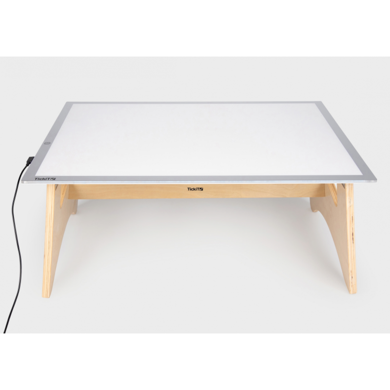 Table en bois équipée d’un panneau LED lumineux, conçue pour l'exploration sensorielle des enfants à partir de 3 ans.